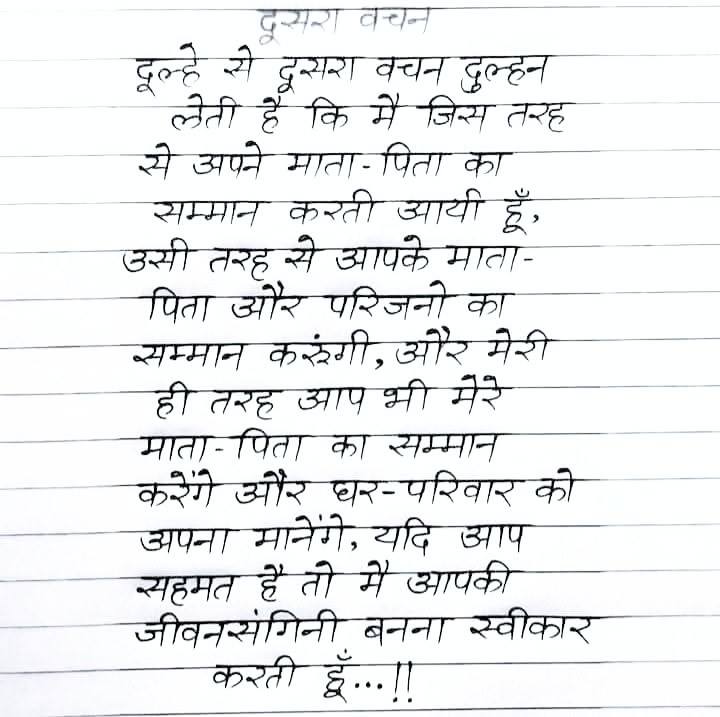 वामांगमायामि तदा त्वदीयं ब्रवीति कन्या वचनं द्वितीयम!!