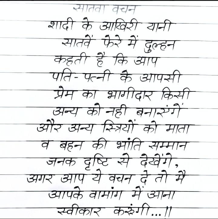 वामांगमायामि तदा त्वदीयं ब्रूते वच: सप्तमत्र कन्या!!